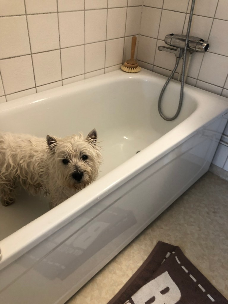 Milou fick bada innan han åkte hem igår 🐻❄️ 🐣