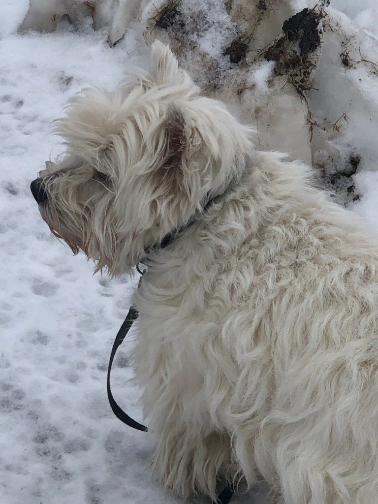 Vi går runt kullen,den vägen är bäst nu för tassarna 🐾