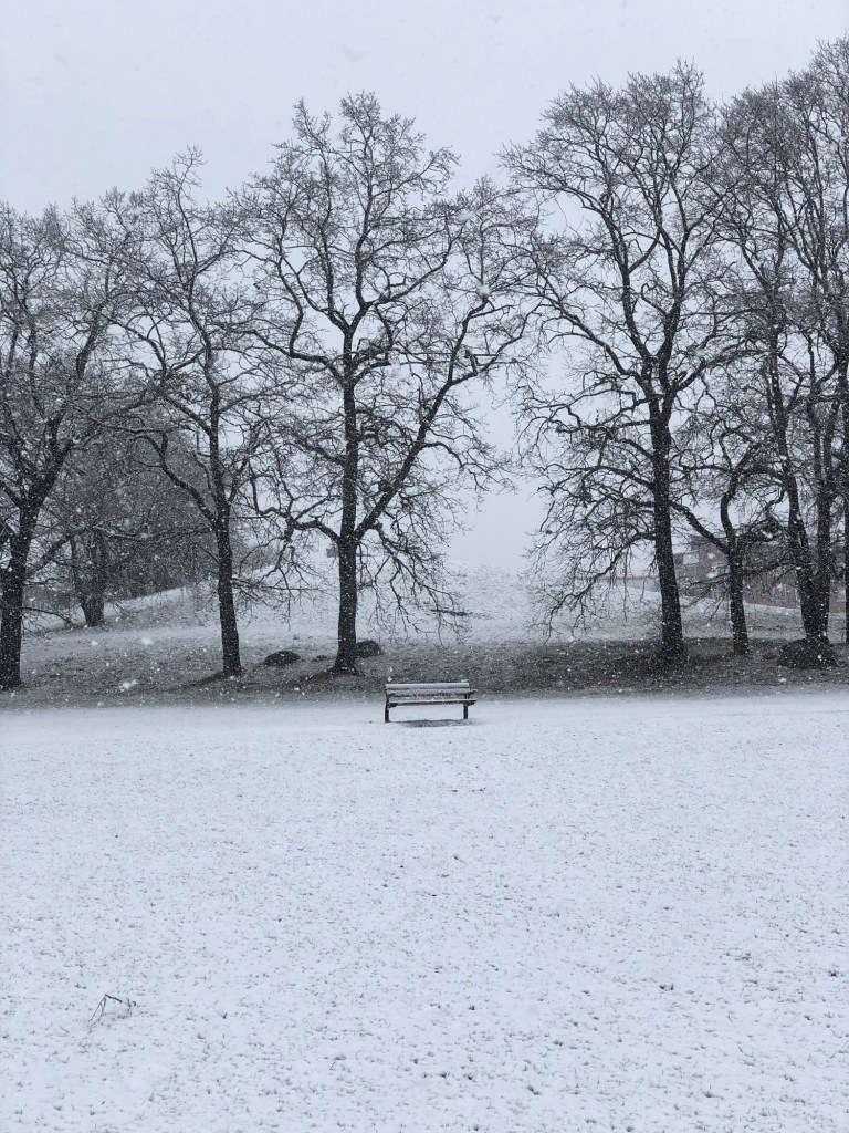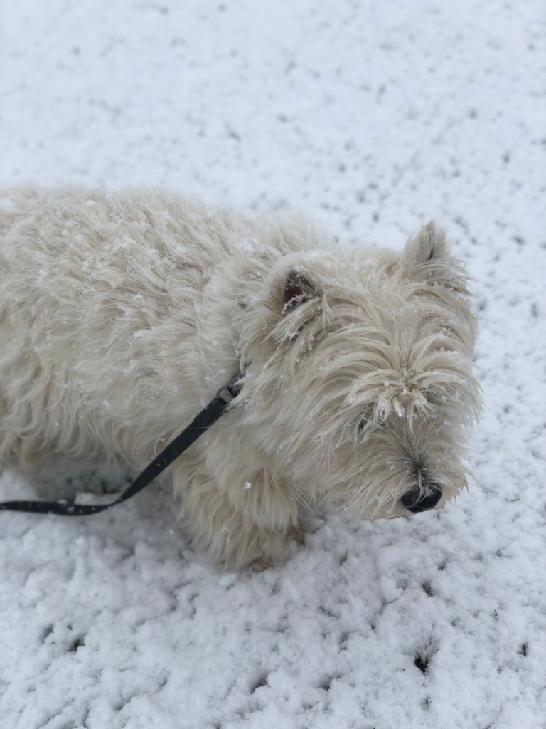 Igår fick vi pulsa i snö… påskaftons morgonpromenad 🐣