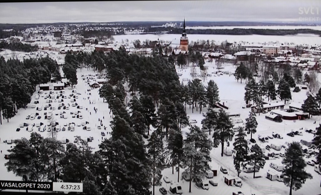 Startfältet i Sälen – pick och pack måste fraktas till Mora.