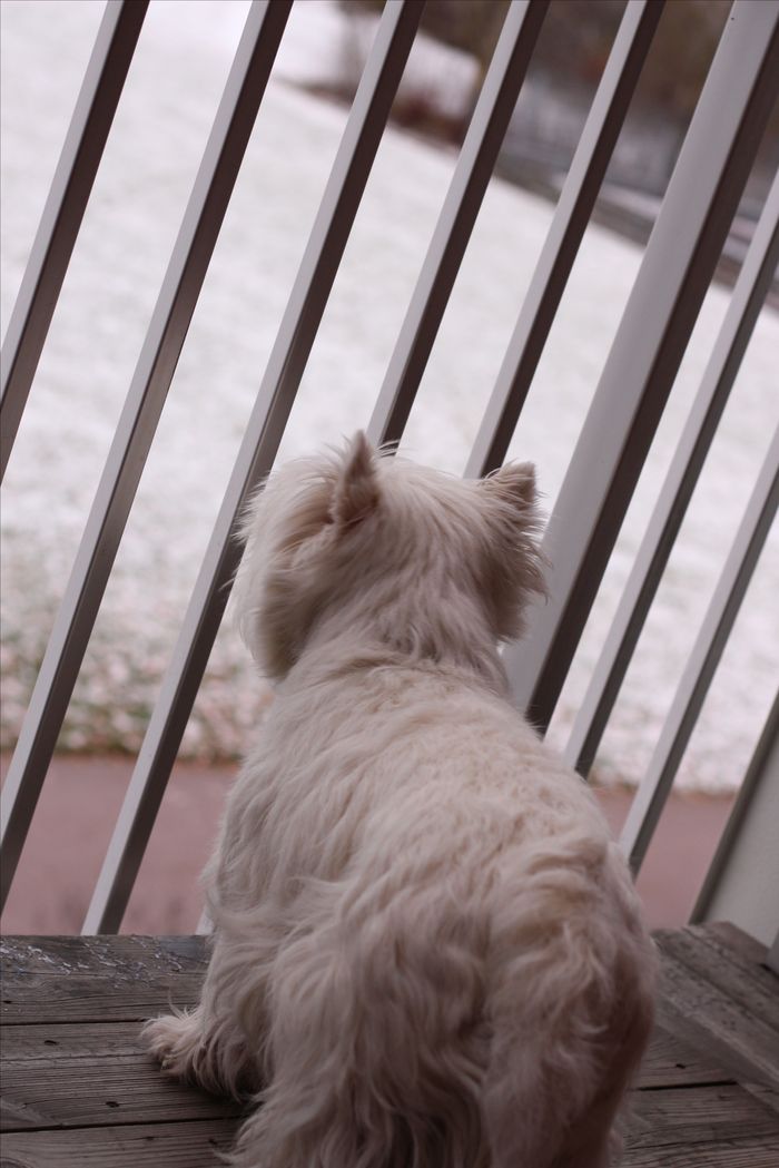 -6 och lite snö på marken – de små” vita” väntar vid dörren.