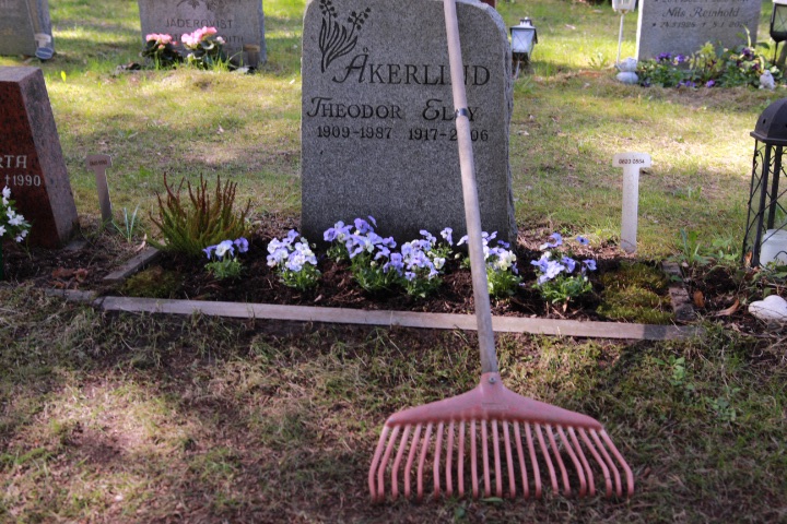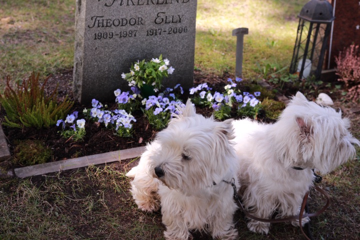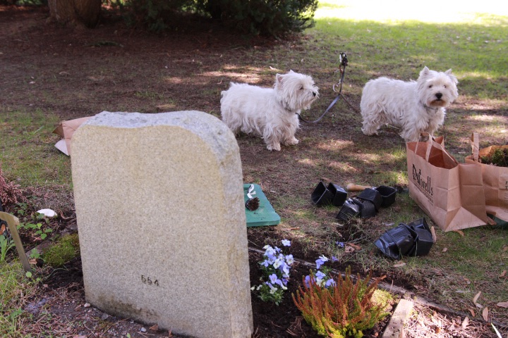 Först skurade vi gravstenen med såpa.