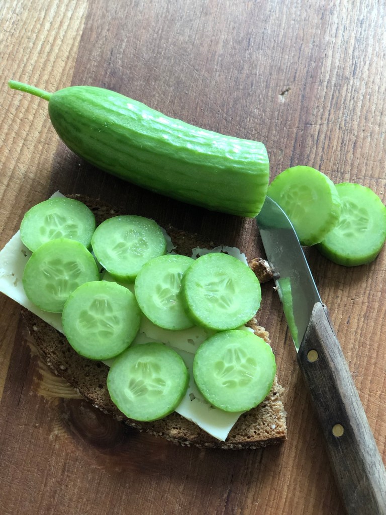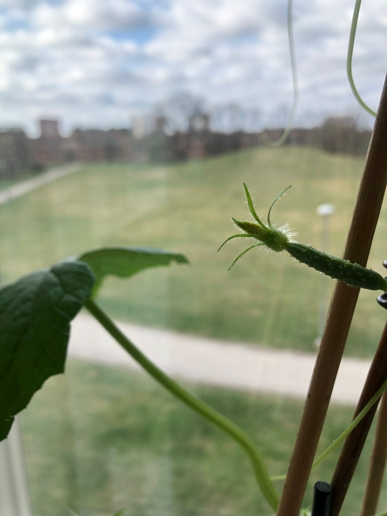 Gurkan har blåst sönder,så den har vi kastat – blir inget mer gurkodling på balkongen – eller inne i fönstret🥒