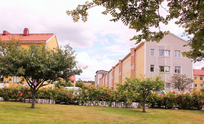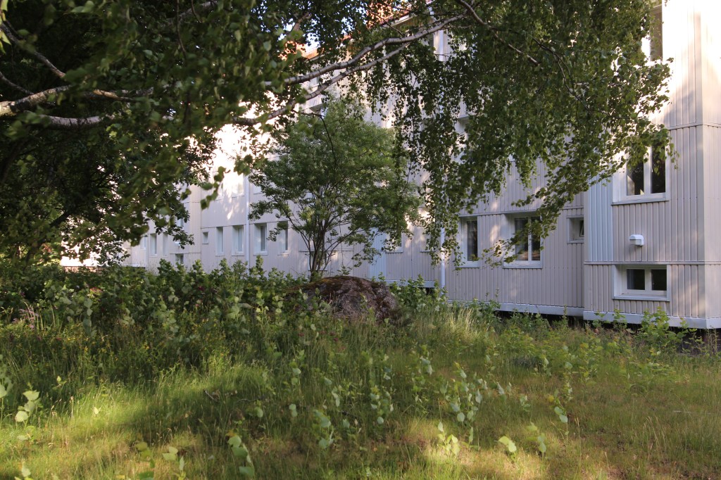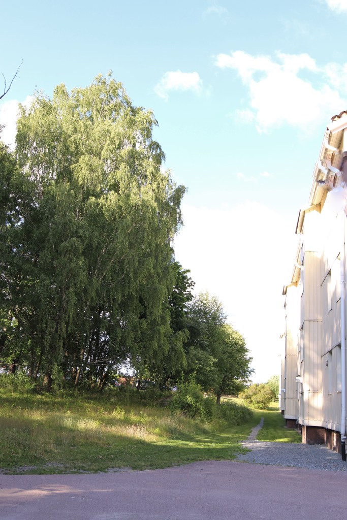 Bergsgatan är en grusväg och det står en PW på parkeringen.