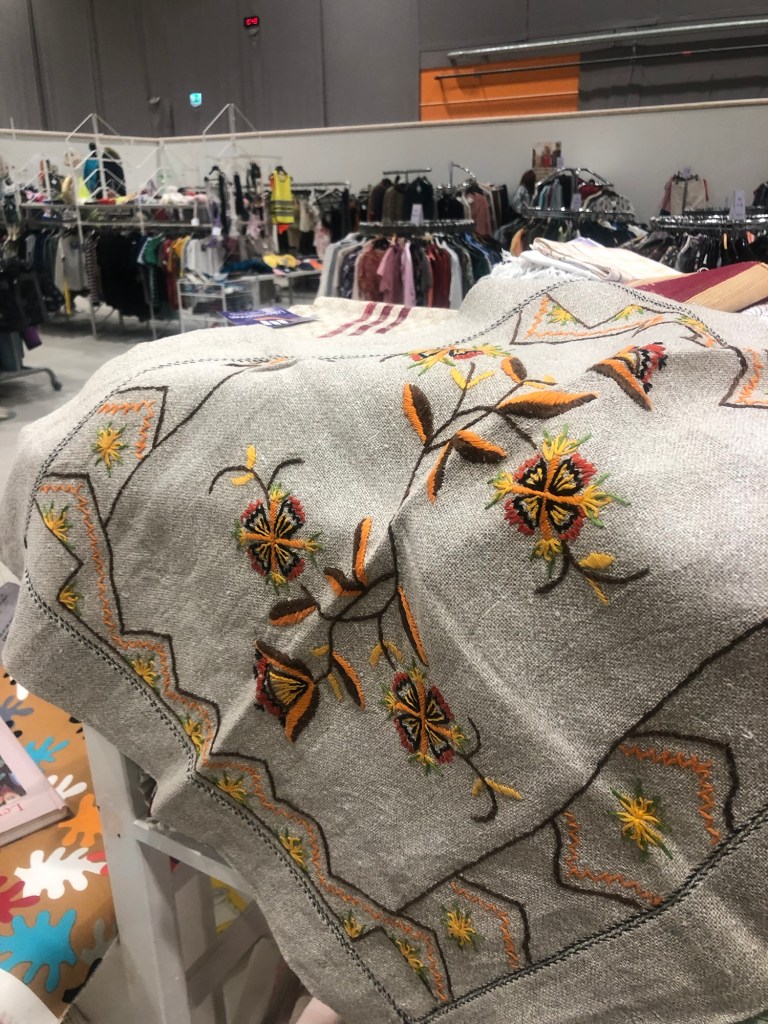 Linneduk med fint broderi – skulle passa på mitt lilla slagbord