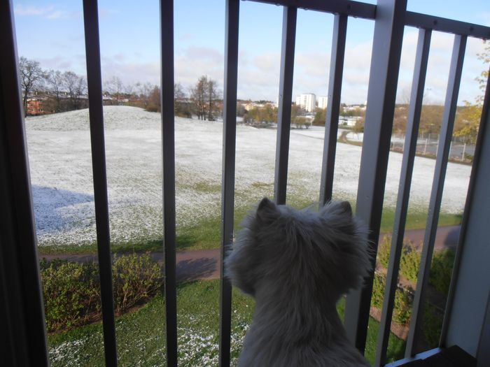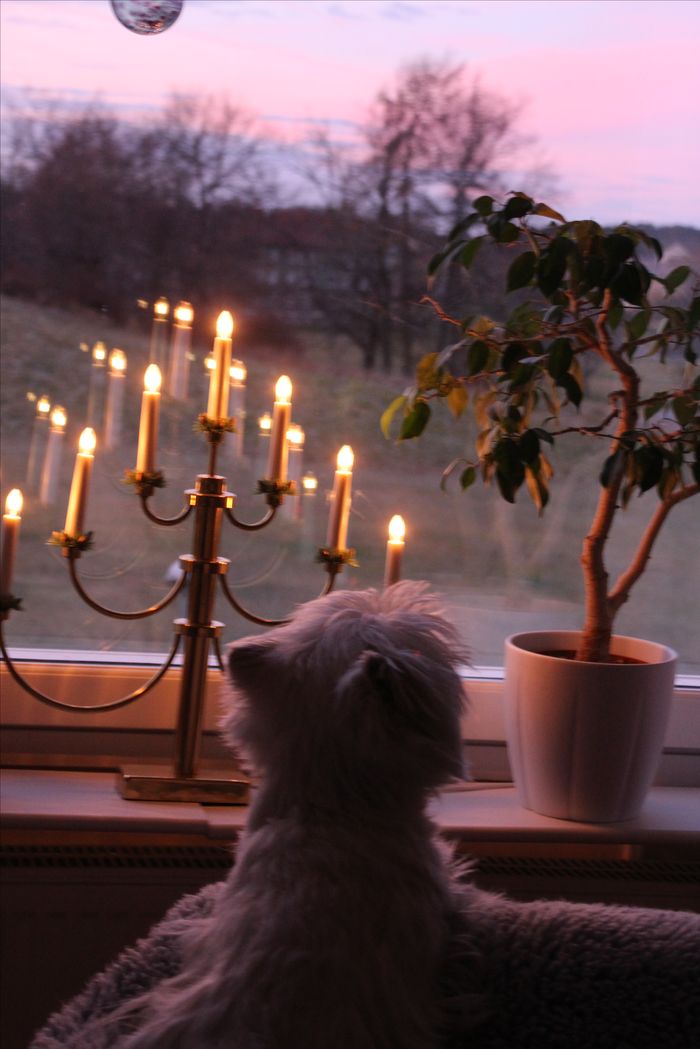 Äntligen lugnt efter gårdagens fyrverkeri – då vi måste stänga balkongdörren. Smällar gillar vi inte !